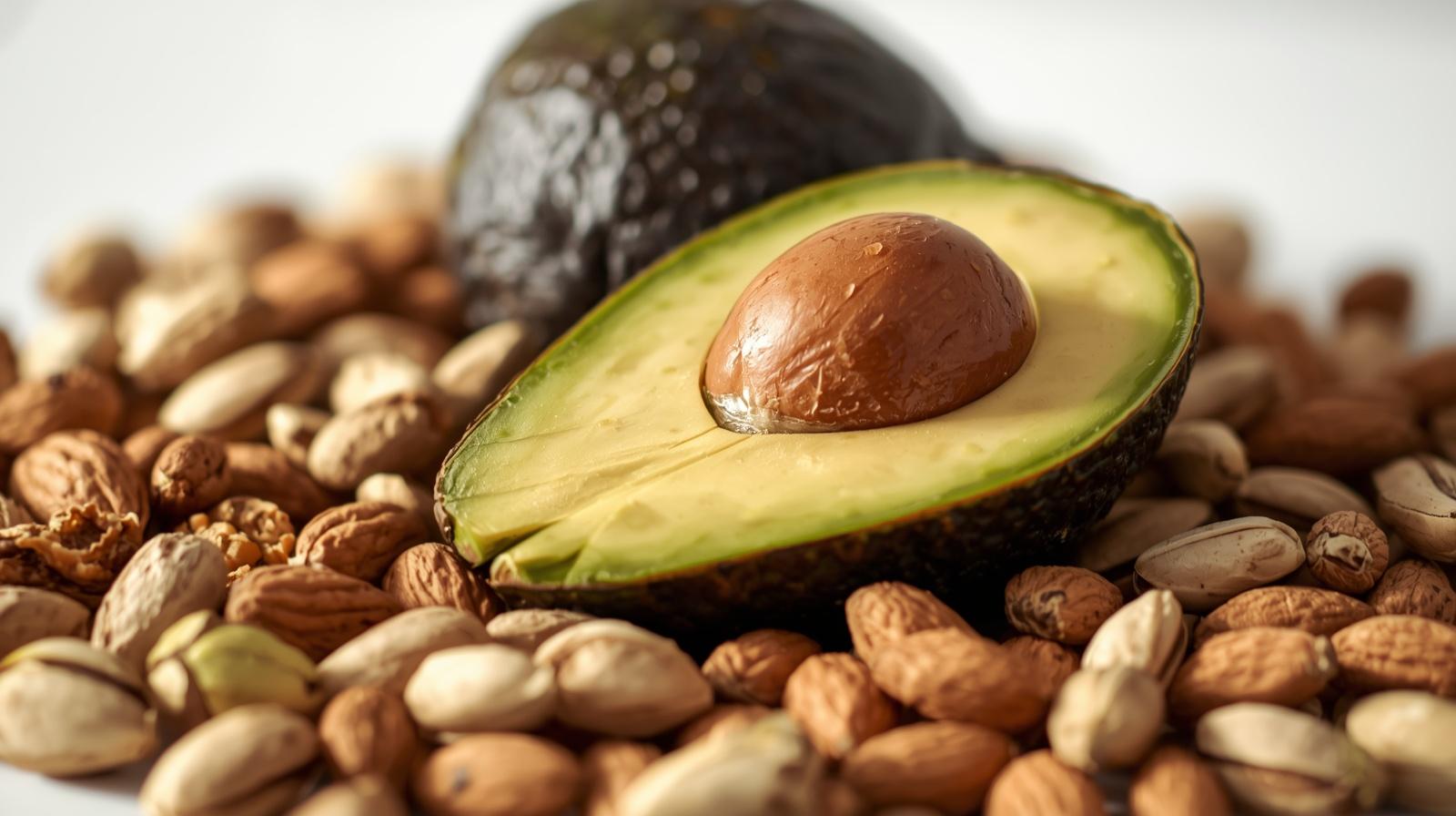 - Avocados, Nüsse (Mandeln, Walnüsse), Olivenöl, Leinöl