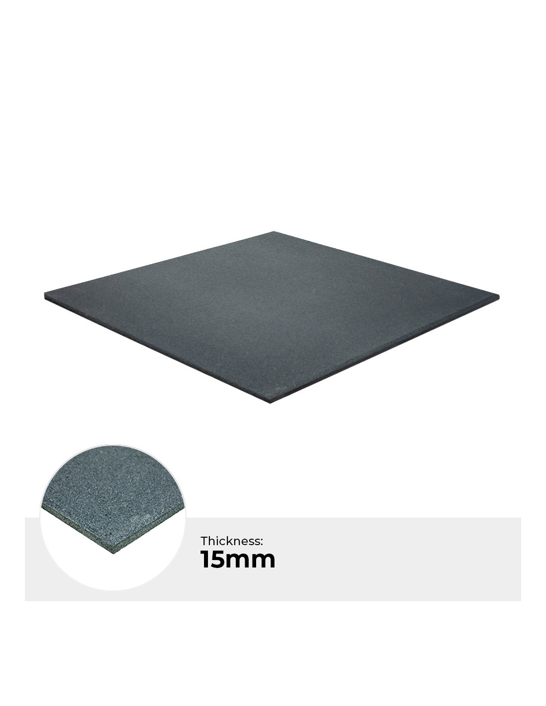 Die Standard-Fitnessfliese in der f?rbe grau besteht ausschlie?lich aus recyceltem SBR-Granulat, welches mit PU zusammengeklebt wurde, und hat die Abmessungen 1000x1000x15mm.